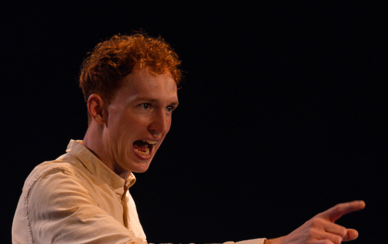 Nick Dawkins’s script is refined and full to the brim with heart and wit, while leaving just the right amount of room for contributions from the actor and directors, which lift the piece to another level. These would not be possible if we were not in the hands of a performer in Tom Claxton who effortlessly embodies every character with variety and clarity throughout. These interruptions are peppered throughout Tommy’s monologue and have been honed by expert direction by Charlie Norburn and Izzy Edwards.