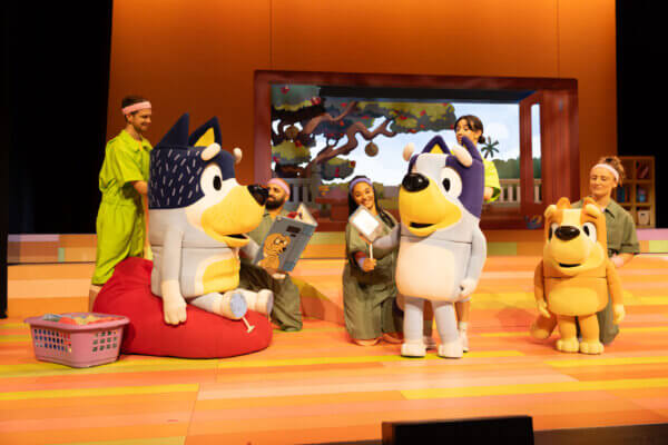 The stage show that every child under 7 (and their Mums and Dads) have been eagerly waiting for finally arrived on the stage of Alhambra Theatre, Bradford this evening – Bluey’s Big Play. Complete with a brand new, original story from creator Joe Brumm, score from Bluey composer Joff Bush and voiced by the original voice artists, it’s impossible not to delight this very young audience.