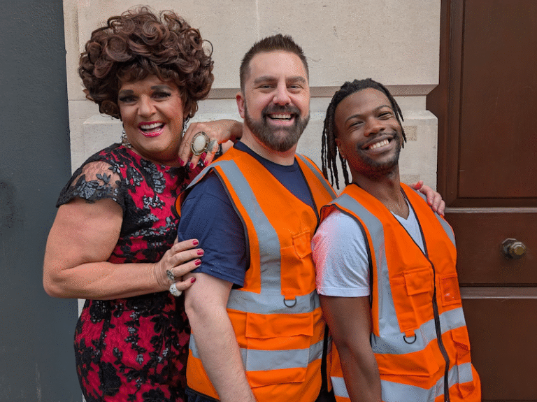 Without Diamond’s performance, Dragging Your Heels is too cheesy for its own good. Affable Ben, played by Geo, has started a new job with Callum (Tafadzwa Madubeko), who has just split up with his boyfriend. Ben is impossibly nice to everyone, including his ex-wife, whom he calls at the start of the show. Rather than a builder, he really wants to be a stand-up comedian, but suffers, we’re told many times, from stage fright. A solution to this problem appears when Callum takes him to the local gay bar and its drag queen cabaret.