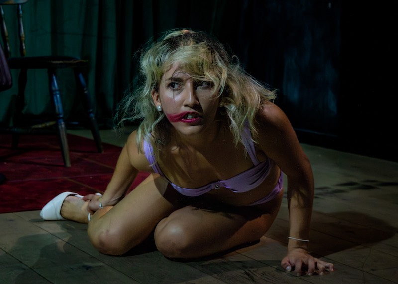 This excessive stage business is distracting, but more to the point, it undercuts the powerful events that follow. In between Maeva’s outbursts, there are refrains to something crawling on her back. This is unsettling and hints at something darker. Maeva then suddenly and violently hurls herself with force against a table. This seems unhinged at first. We are uncertain as to what’s going on. Eventually, though, it becomes clear that a past event is forcing itself into the present moment. When Maeva removes her dress and reveals what’s underneath, both literally and metaphorically, her story takes on a sharper edge.