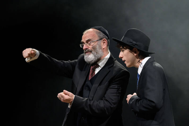 Braun’s bulky narrative time shifts between the funeral, Ari’s childhood, and events leading up to his suicide. There is a late-act fancy dress dream sequence in which the characters act out a traditional Hasidic parable. It sits a little oddly with the tone of the piece, but at least offers a glimmer of light amidst all the darkness.