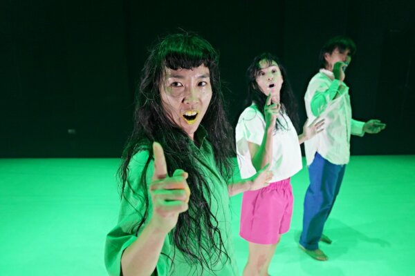 After a 30-minute interval, Sung Im Her’s 45-minute dance Tomorrowisnowtodayisyesterday (TiNTiY) muses on the relentlessness of our online lives and how image is primped and filtered to become generic recreations of sameness. Using no video at all, this is a dance that plays with concepts of production with vastly energetic and cyclical movements creating synchronicity between the three dancers who move their arms, shoulders and hips at high speed.