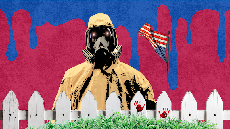 The troupe loves a trope: the action begins with a classic road-trip cut short, sending the fresh-out-of-high-school trio on their nightmare detour to the scary backwater of Little Town Blue. Shades are donned in Blues Brothers homage, and when a saviour swings by at a tense moment, he’s wrapped in the Stars and Stripes, and the whole cast cries “It’s the Vietnam cliché!” There’s always a fresh perspective or twist to elevate the imitation.
