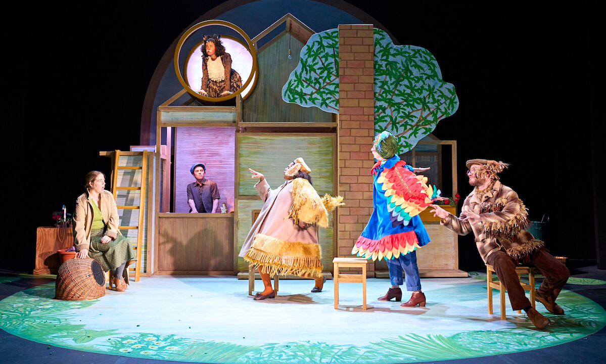 One cannot help but be struck by the incredible doll house style structure of Laura McEwen’s set. It is beautifully juvenile, simply designed and highly functional with the ability to pop, flip and move according to the needs of the narrative arc. Similarly, her approach to costume is inventive, with colourful characters spliced with matching animals on the other side of their profile. Cleverly, the choreography of the V.E.T. sequence creates marvellous chaos and makes the multi-roling of the ensemble as both pet and pet owner really pop, and here the magic of McEwen’s design really comes into play.