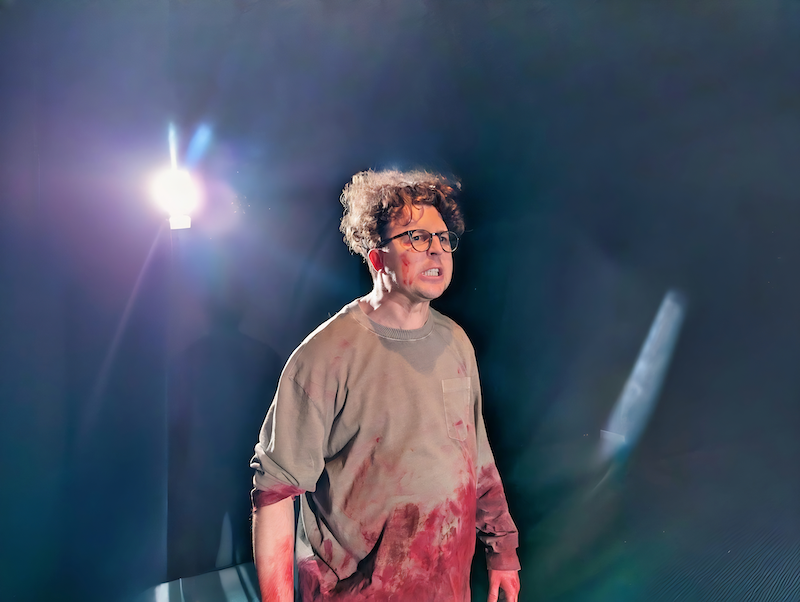 In a bloody shirt and trousers, with his hands stained with blood, Hawes’ words and mannerisms craft a story that is easy to follow. This show explores a day in the life of a tired, emotionally and economically stressed unnamed man. A storyteller by trade, he does not make enough money to fully support his growing family. With two small children and a baby on the way, the story opens early one morning with him taking charge of the children while his wife rests.