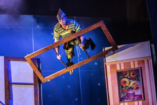 Anyone who has seen Mischief Theatre’s other productions, The Play That Goes Wrong, Magic Goes Wrong or the TV show The Goes Wrong Show, knows what they are getting into. It’s immediately apparent what some of the issues are going to be, both those built into Simon Scullion’s fantastically designed revolving set, and within the interpersonal interactions between the actors, but a lot will also be a complete surprise. This means the audience gets a balance of being satisfyingly correct, and still also absolutely blindsided by a well-executed stunt. Unfortunately however, a lot of the ‘going wrong’ becomes slightly repetitive towards Act 2 – nearly every cast member has ended up in their underwear (or less) by then, and it’s possible to lose track of how many times someone has been bashed on the head. A lot of the mistakes also rely on being meta-plot based rather than practical effects, such as regular use of accidentally prerecorded discussions being played instead of the expected sound effect. While this is still always hilarious and has kept the format fresh by focusing more on the characters than the stage teams technical prowess, it does mean that Peter Pan Goes Wrong doesn’t have the overall charm and genuine shock value of Mischief Theatre’s previous offerings.