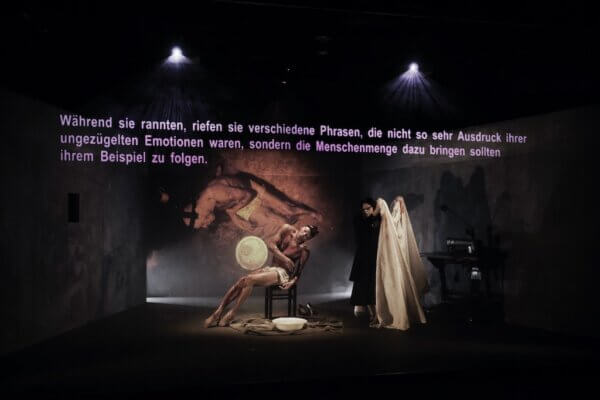 Alisa Khazanova, the protagonist, delivers a powerful vocal performance, particularly during brief, poetic interludes of church-like songs. However, the lack of differentiation between the women’s performances makes it difficult for the audience to truly engage with their individual stories. We are left more with their words than with a sense of who these women are.