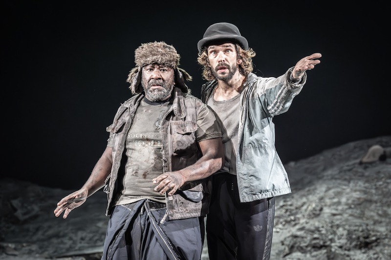 Embracing, holding fast to each other like infants in a playground, what emerges from the chemistry between Wishaw and Msamati (both as fine dramatic actors as they are comic) is quite how much this production’s Didi and Gogo love one another. “Together again at last, get up while I embrace you,” one tells the other, tender companionship their only respite from the desperate loneliness of the human condition. These two, with their endless jabbering and bickering, could be Laurel and Hardy. A music-hall-style hat-swapping routine feels like it comes straight out of a 1930s Hollywood comedy.