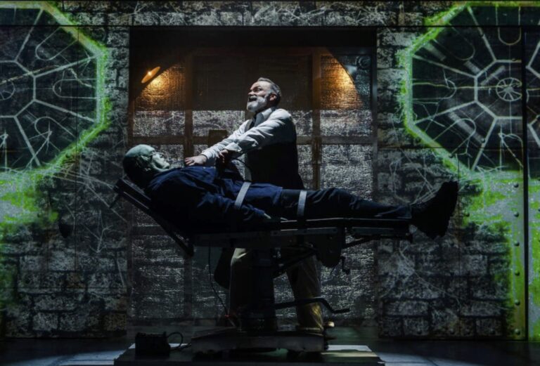 The world of Young Frankenstein is stitched together with imagination thanks to Sophia Pardon’s clever set design and jolted fully alive (It is alive) by Matt Powell’s video and projection, which keep the looming gothic world playful rather than oppressive.